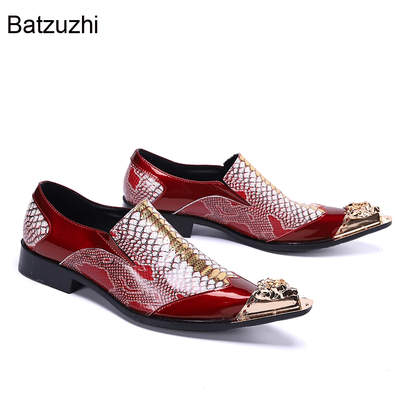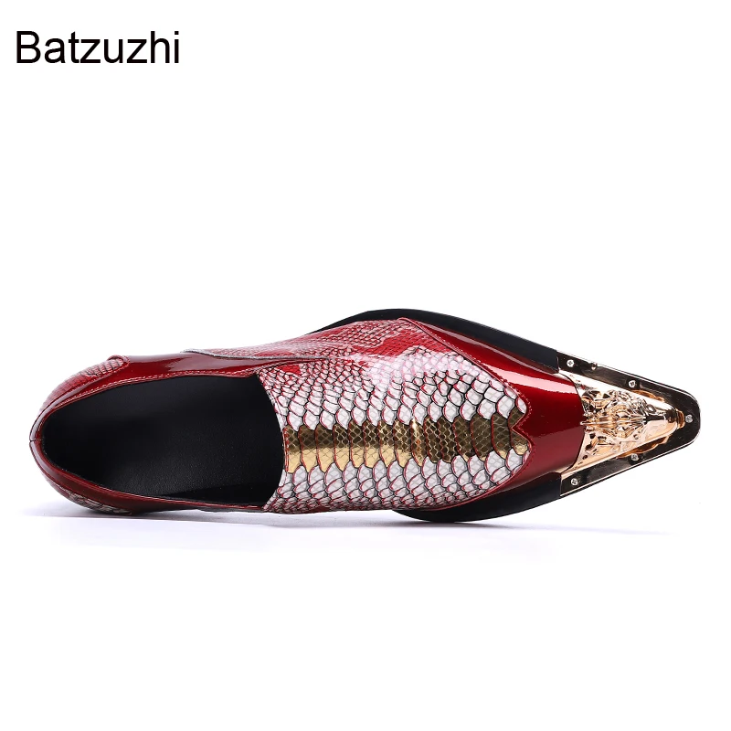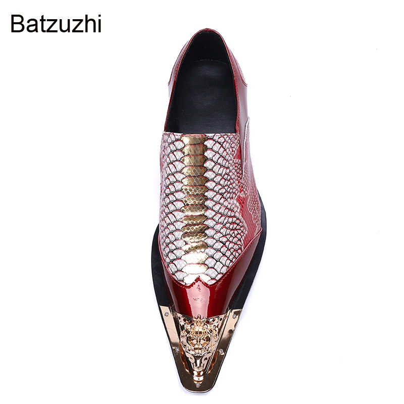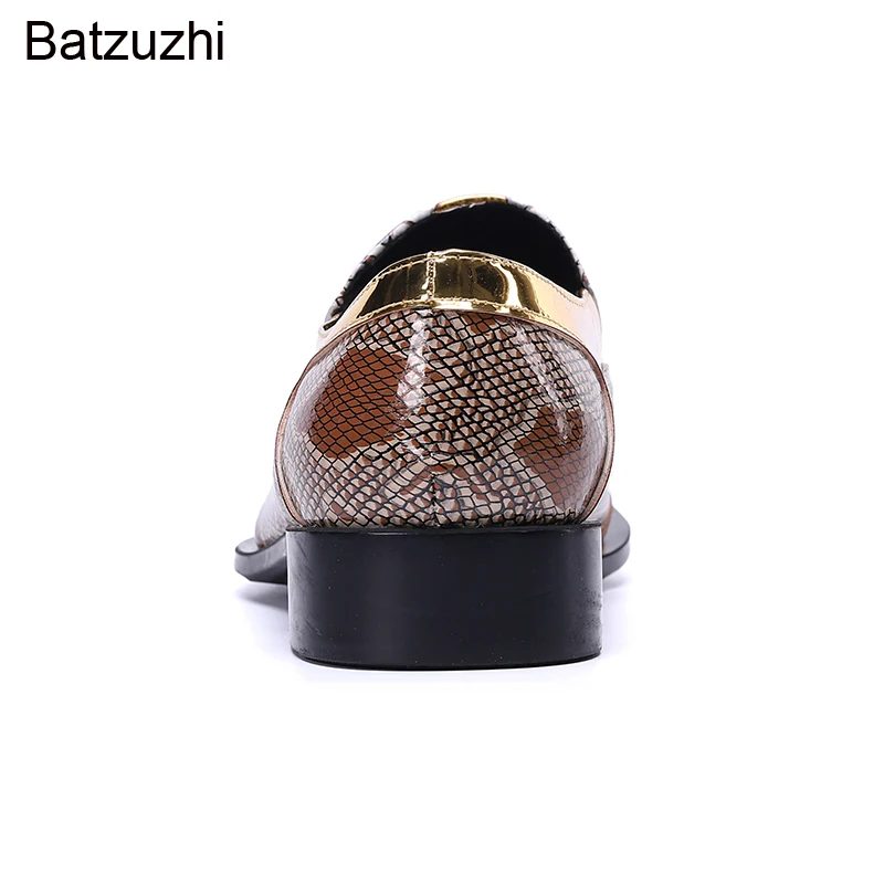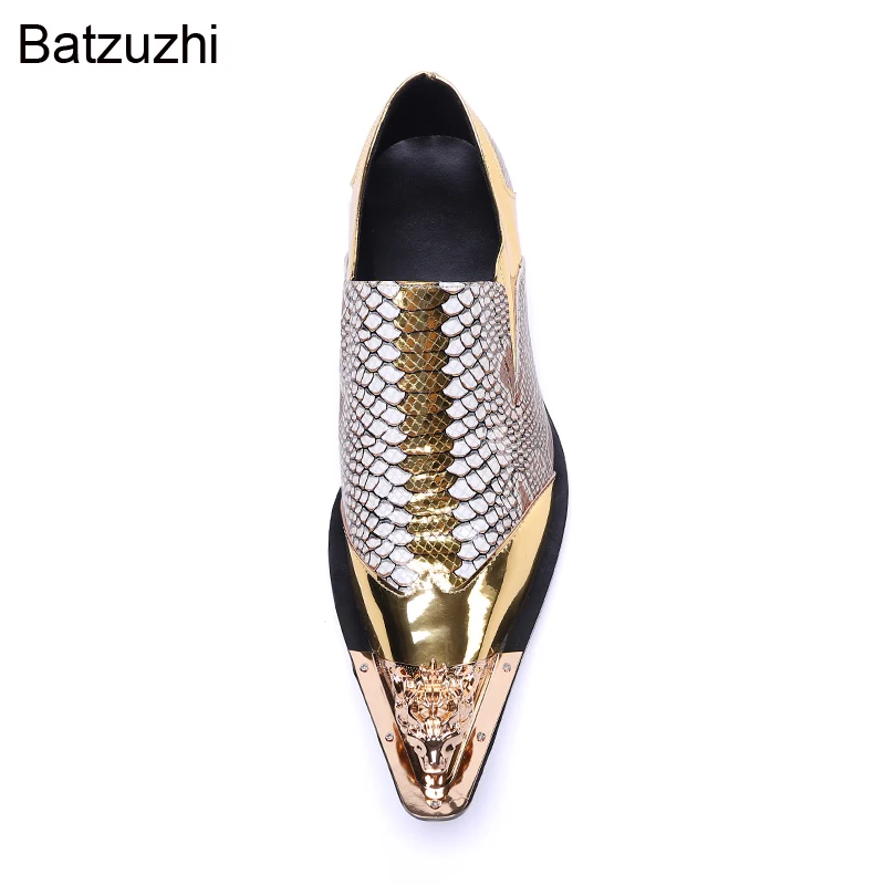 Batzuzhi Luxury Handmade Men's Shoes Pointed Toe Leather Dress Shoes Men Slip-on Gold Oxfords for Men Party/Wedding, EU38-46
